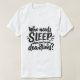 T-tröjan är en klassisk svart, med en elegant och modern duk för den feta vita texten. Citatet "Vem som behöver sova" är skrivet i stor, lekfull, men skarp blockering över bröstet, med ord "sömn" förstorad eller i ett handskrivet kreativ, ge det en lätt känsla. Under den står frasen "när du har har" i ett något mindre typsnitt, i en mer avslappnad, handskriven stil för att förmedla tidspressen på ett roligt, relativt sätt. För att lägga till ett synligt intresse kan ett litet inslag, som ett kaffe kopp eller en klocka med händer nära midnatt, inkorporeras subtilt intill eller under texten, som symboliserar det sena nattslipet. Det enkla svarta och vita färg-systemet gör utformningen enkel att bära medan den lekande layouten och typsnitt ge är en personlighet. Konstruktionen är centrerad, med tillräckligt med utrymme för att andas, hålla den snyggt och inte överväldigande. Perfekt för studenter, professioneller, eller någon som är van vid att offra sömnen i tid, ger den här T-tröjan både humor och komfort med sin minimalistiska men ändå slående utformning.