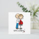 En söt seriefigur av en man och kvinna som uppenbarligen väntar barn med texten "Vi väntar!" på T-shirts, muggar, kort, klistermärken, påsar, minnesskåp, ornament, musmattor, nyckelringar och andra föremål som passar perfekt för par som väntar barn!