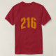 bedrövade t-skjorta 216 (för riktnummer) med guld grafiskt.