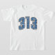 bedrövade t-skjorta 313 (för riktnummer) med den lite blått, silver & svarten grafiskt.