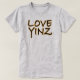 " ÄLSKA YINZ" i svart, och guld beklär på av dam t-skjorta - underbart för någon Pittsburgh fläkt.