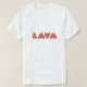 Läser LAVA på bekläda och på baksidaen det något att säga, "lek med [LAVA] och får bränt!",