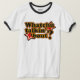 Vad dig Talkin" 'anfallT-tröja. Orangen rött och gult, med stort ifrågasätter markerar.
