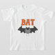 En svart Halloween-fladdermus och orange med texten "FLADDERMUS" på t-tröjor, kroppsdräkter, mugg, kort, klistermärken, tote bags, knappar, magneter och andra T-tröjor och presenter från Halloween FLADDERMUS.
