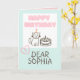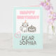 Det är ett jakande katt&keringskort för Grattis på födelsedagen. En katt i en hatt och en tårta är så söt. Mjuka blått och rosa i himlar är harmoniserade. Det var designat som om ett sött barn hade dragit det för hand. Det är en meningsfull gåva till din älskade. Köp din idag! Ha bra.