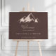 Detta tydliga välkomsttecken för landsbyggsbröllopet i bergsområdena är perfekt för ett rustiskt bröllop. Konstruktionen har ett idylliskt vattenfärgsbeige-berg. Gör detta till ett eget poster genom att lägga till namn i bruden och brudgummen och datumet för bröllop.