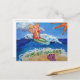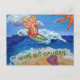 Målningen visar en glimmerande orange som surfar ängel på ett blått hav med ett mousserande sol. Seafoam tvättar upp på sand som omger ord "Svep ut Cancer". Det finns en rosa på stranden. Målningen gjordes i akryl och sprinklades med glitter för struktur och skinn. Anpassa vykorten med egna alternativ för anpassningsbar.