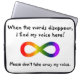 För personer som ibland användor elektroniska enheter för att kommunicera med andra i vardagen måste du klargöra att den här enheten är en nödvändig del av ditt liv och du kan inte bara lägga den åt sidan. "När ord försvinner hittar jag min röst här. Ta inte bort min röst." Med en regnbågsoändlighet för neurologisk mångfald och autistiskt pride.