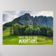 Denna poster är ett bild i ett berg i norra Italien med en gräs-skog på en grumlig sommardag. Rubriken lyder "Ta mig till bergen".