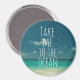 Ta mig till Ocean Quote Typography. Vackra retro-inspirerade strandscenen med blå ton (hav, sand, himlar) ram i roligten citerar/säger "ta mig till havet". Underbar för stranden älskare eller någon som absolut kärleken över havet. Slappna av, kom och kom undan.