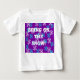 Det här barnets t-shirt har ett vinstringsmeddelande, med en design av blått och vitt snöflingor på lilans bakgrund. Underbar till jul eller när som helst på vintern!