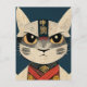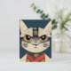 Tabby Cat as Nobunaga Oga in Japanese Wood Wall A Vykort