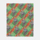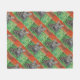 Tabby cat looking curious in grass fleece blanket