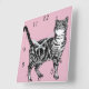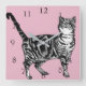 Tabby Katt Katter Konst Djur Barns Pastell Rosa De Fyrkantig Klocka