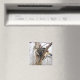 Den här kvadratiska magneten har en tabb eller en tigerkatt som står i träd och vaktar hennes egendom.