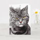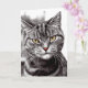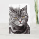 Detta kort för roligt av kattälskare och kattägare har ett närliggande foto av ansikte i ett vackert tabby katt med silver med verklig attityd. Hon verkar säga vem du tittar på? Jag har använt selektiv färgning för att få fram skönheten hos hennes stora ögon och söta näsa.