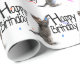 Tabby katt med födelsedagstext och konfetti presentpapper