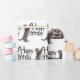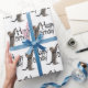 Tabby katt leker med födelsedagstext på vitt. Bakgrunden till färg kan ändras.