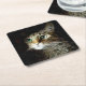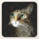 Tabby katt med Grönt Ögon isolerat på svart Underlägg Papper Kvadrat