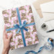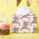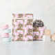 Malning av grått och brunt tabby katt på rosa och vit gingham-bakgrund.