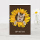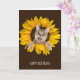 Sväng tabby katt i gultens solrosor för födelsedagsbruk på bruna bakgrunder.