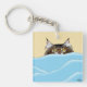 Tabby katt kikar över filtar för att säga att de är uppe!