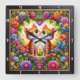 Tabby Kitten Floral Heart Wall Fyrkantig Klocka