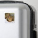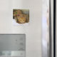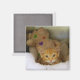 En tabbykattunge och en nalle hänger i en bärare i baby.