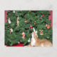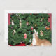 Orange och vita tabby katt försöker spela med Julgran-prydnadsföremål.