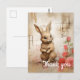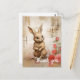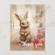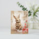 En söt kanin står på sina bakben mot en bakgrund av abstrakta fläckar och dropar, med ett milt uttryck i ansiktet. Bredvid kaninen lägger en grupp rosa rosor till en färgstark ton i den sepiafärgade miljön.
