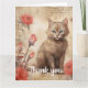 En flytande tabb med kattunge med Streckande blå ögon är sitta bredvid två rosa ros mot en bakgrund med vintage och bläck-block. Sepian tonar ge en varm antik känsla för sammansättningen, som kombinerar blommigtar och ett sött djur subjekt.