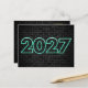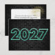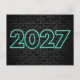 Nyår 2027 grön neonskylt på en mörk tegelvägg för ett företag tack.