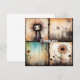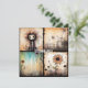 Ett vismiskt tecken med vild hår och stort ögon upptar den översta lämnat fyrkanten, som antyder ett Tim Burton-eque-estetiskt. Den översta kvadraten på högerna har en god arkitektur med ett avolat, eventuellt efterapokalyptiskt vibe, medan visningen på grund:s torg stiliserades, vibrerande blommor mot en eterisk bakgrund.