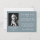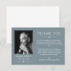 Minimalistiskt och rent tack för ett minneskort som innehåller vit text mot en ren slatblå bakgrund, smakfull typsnitt och ett foto av din älskade.