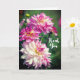 Rosa och vita Dahlia blommor med grönt löv i bakgrunden. Fotografiet togs i augusti på RHS Wisley-trädgårdar. Sentiment kan ändras till vad du vill på framsidan och insidan.