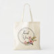 Den här tote-väskan har ett "Tack"-skript för blommigt och andedräkt i eleganten i mitten. Det är perfekt för bröllopsfavoriter, party-gåvor eller tankfulla uppskattningsväskor. Enkel, söt och återanvändbar. Matchar samlingen för den Blommigten Bröllop.