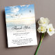 Himmelskt tack för natursympati för begravningens minneskort med vit övertäckning och ett sjölandskap på stranden, vatten.
