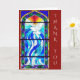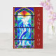 Denna bild är ett vackert glasmålingsfönster av den Helige Ande i form av en duva.