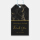 Tack Elegant Marble Bröllop Gift-Märkre. Den svarta och Guld Elegant Marble Tack Gift-Märkrn innehåller vener från guld på marmor. Dessa Tack Gift-Märkre är perfekt för Formal Black and Guld Elegant Marble bröllop. Den här presentens märkre kan uppdateras med ditt namn och datum.