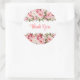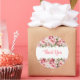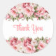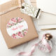 Runt tack-klistermärke visas med ett vackert rosa peonyblommönster.