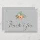 Tack vare den vackra blommigten tackkort kan du visa din uppskattning för gästerna i klassy stil. Framsidan har en underbar blå bakgrund med rosa och blå blommigt. "Tack" är skrivet med ett vackert brunt teckensnitt. Beställ din i dag!
