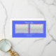 Ett blått tack-ett platt bildkort för 2 foton, med snurrar och små röda hjärtan runt ram. Anpassadet lyder: Tack - Ditt personliga meddelande här, Dan & Sue.