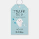 Cute halloween-nöjespojkens födelsedagsfest-favorittagg med illustration av ett sött spöke. I texten står det: "Tack för att ni kom till min party."