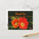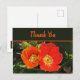 Kaktusblommor står i full blom på detta vykort med sydvästlig uppskattning. Naturfotot fångar stora ljusröda orangea blommor tillsammans med de gröna kaktussegmenten och stora blomknoppar. "Tack" visas i ljus orange typsnitt mot en mörkgrön bakgrund högst upp på detta tackkort. Baksidan av vykortet har lämnats tom för dina personliga ord om uppskattning.