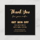 Det här Tack Business Logotyp Modern Minimalist Black-rabattkortet är perfekt för butiksverksamheten. Utformningen har ett enkelt, minimalistiskt, modernt handskript med solid svart bakgrund färg. Skapa ditt eget kampanjrabattkort genom att helt enkelt personlig den här onlinen.