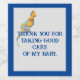 Ett tack från flaska i vin är ännu mer meningsfullt med denna uppskattning av vin. Det här är en roligt och en unik design som visar en färg-blockkatt som bortser från ord, "tack för att du tar bran hand om mitt baby". En gränsare i ljusblått matchar texten på den här flaska-etiketten. Den här vin-etiketten kan vara personlig för din barnvakt som tar så underbar hand om ditt dyrbara husdjur medan du inte kan vara där.