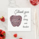 Lägg till en personlig beröring till årsskiftet party med dessa blöjor. I napkins finns ett vackert rött mosaikäpple som gratulerar ord, "Tack för att du är vår lärare". Det röda äpplet var designat på ett sätt till ge i äpplet ett mosaiskt eller nedfläckad glasutseende med rutor av rött, grått och svart. I slutet av året eller i lärarveckan är det perfekten att säga tack till ditt barns lärare för allt deras hårda arbete.