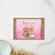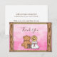 Cute tecknad cowgirl och nalle tack för dina gäster vid babyduschen eller familjen som skickade dig presenter. Rosa och brunt färg.