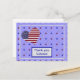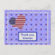 Detta vykort kommer att visa uppskattning till en amerikansk soldat för att han tjänstgjort för vårt land. Den har en bakgrund i ljust blått med små röda, vita och blå stjärnor. I det övre vänstra hörnet på kortet finns ett hjärta i amerikanska flaggan färger, med röda och vita ränder och ett blått område med vita stjärnor i det övre vänstra hörnet. Du kan ändra texten på framsidan. Andra tack-kort finns i min "Say Thanks"-samling. Andra patriotiska föremål finns i min "Americana"-samling.