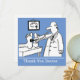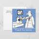 Lönsam tecknad av doktor med stetoskop som testar patientens fötter. Säg "Tack" till en doktor eller kirurg. Anpassa med er egen formulering på båda sidor.